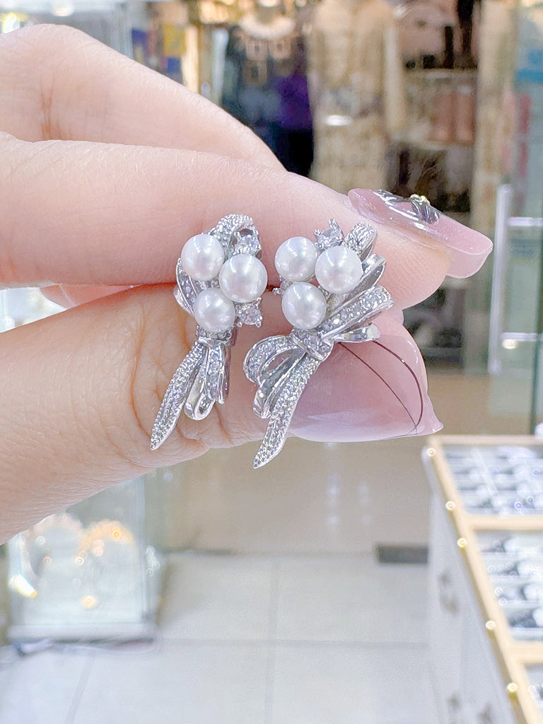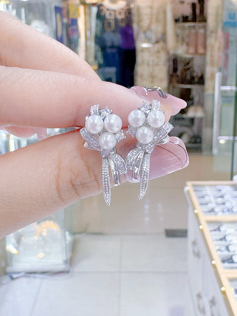 Lunachat 925純銀3-4mm 淡水珍珠花束耳環