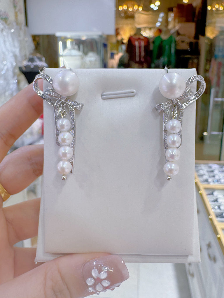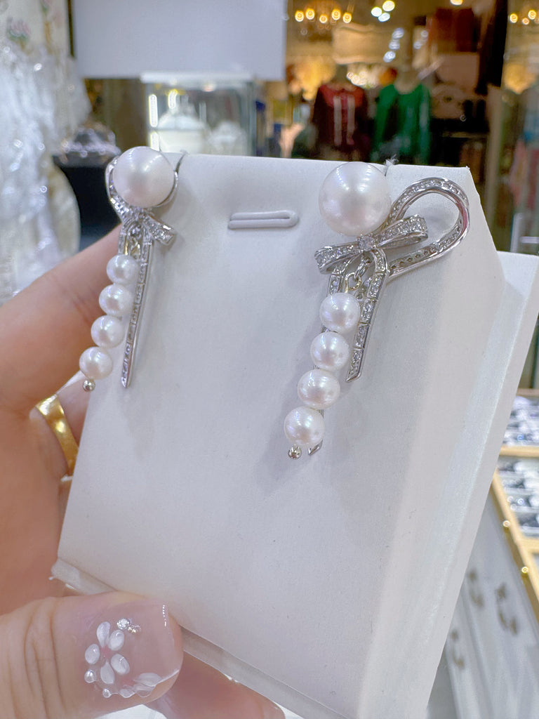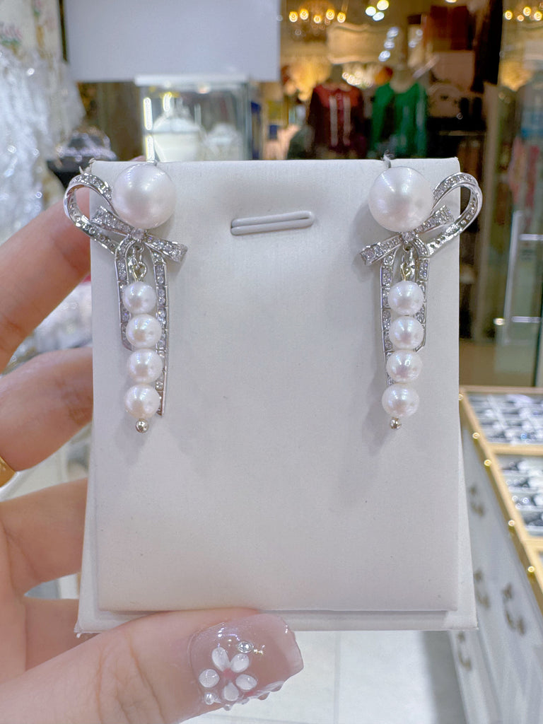 Lunachat 925純銀6-7mm 蝴蝶淡水珍珠長耳環