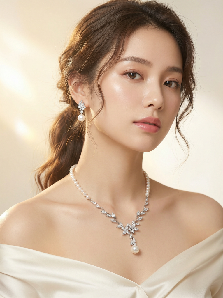Lunachat 18K 金天然珍珠婚嫁bridal accessories及歐洲設計的珍珠珠寶系列