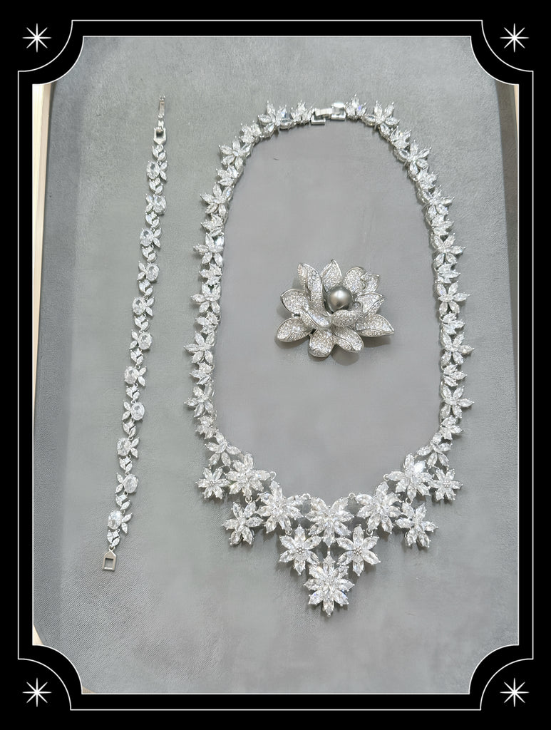 Lunachat Sterling Silver and Crystal Pearl Brooch Milano 50