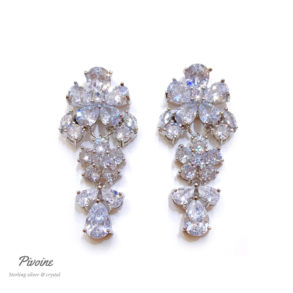 Enhance your bridal attire with the elegant Pivoine Milano Sterling Silver and Crystal Earrings. Expertly designed for your memorable day, these stunning earrings exude grace and luxury. They represent the perfect choice for the bride who desires a classic and polished accent to her wedding style.
