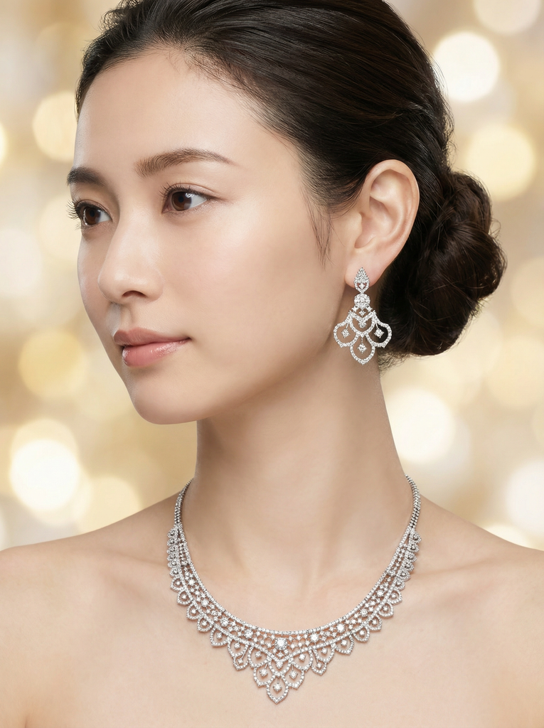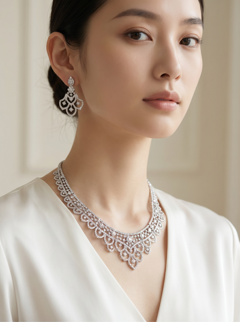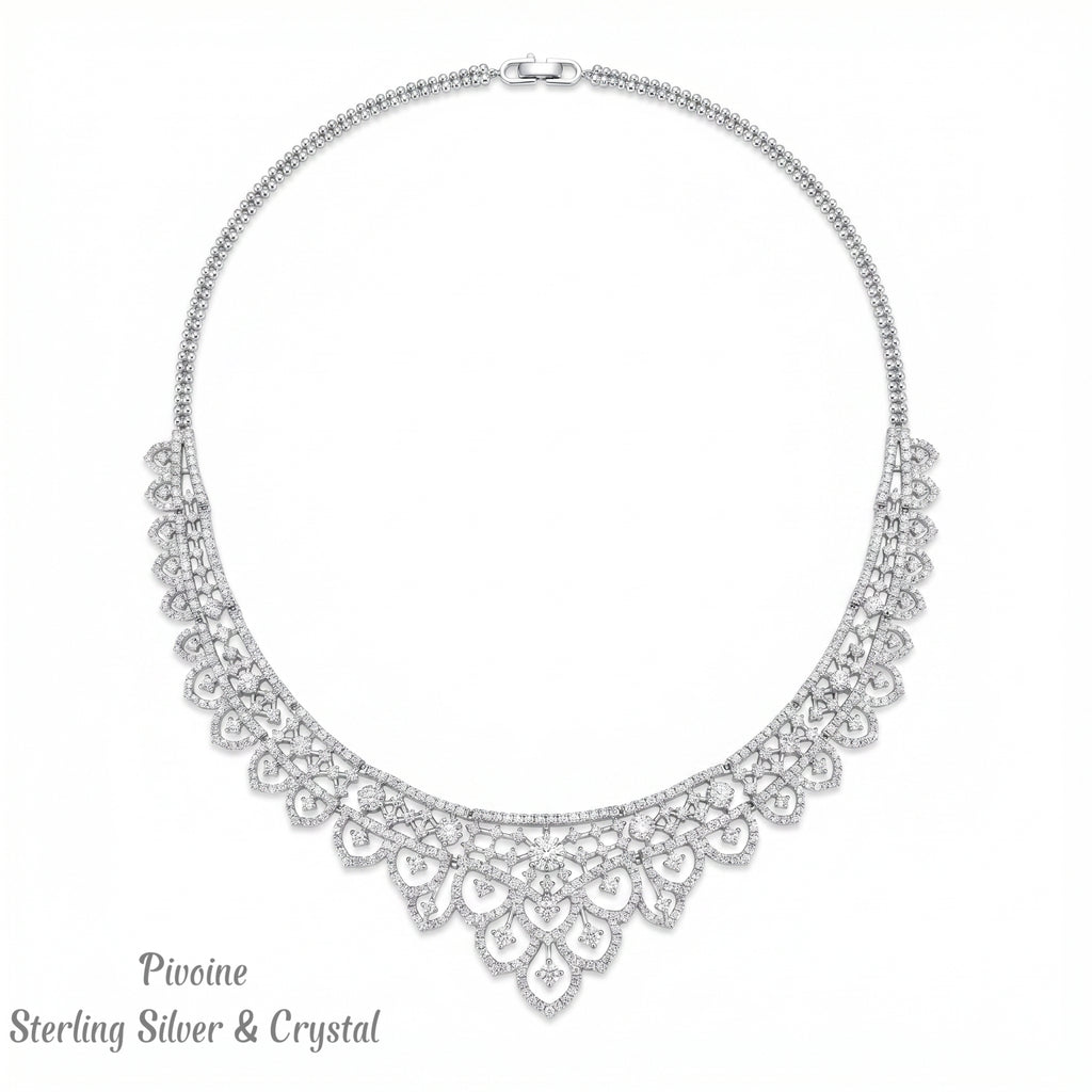 Celebrate your most cherished moments with the Pivoine Milano Sterling Silver and Crystal Bridal Necklace—a masterpiece designed to enhance your wedding day. Each piece is meticulously crafted from premium Sterling Silver and adorned with brilliant crystals that catch the light beautifully. Whether you're walking down the aisle or attending a formal celebration, this necklace brings timeless sophistication and a subtle sparkle that complements any bridal ensemble perfectly.