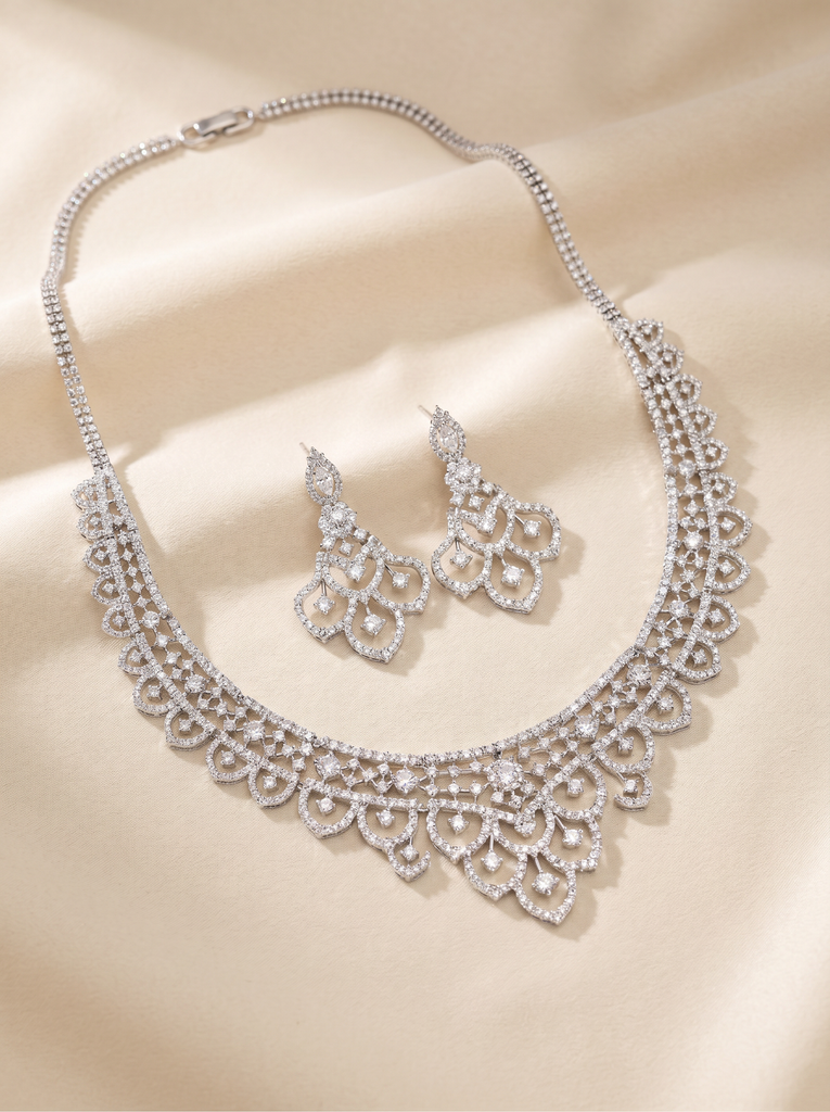 Pivoine Milano Sterling Silver and Crystal Bridal Necklace 25*