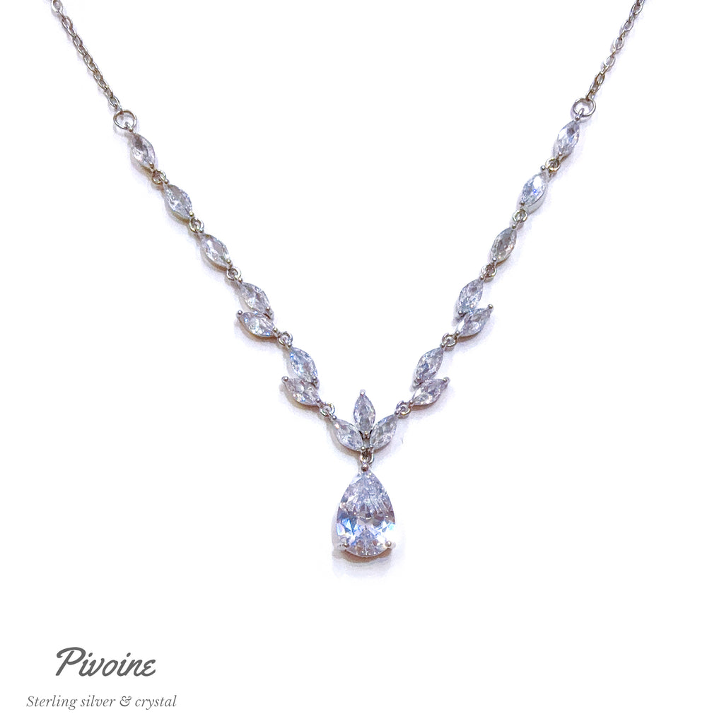 Pivoine Milano Sterling Silver and Crystal Bridal Necklace 45