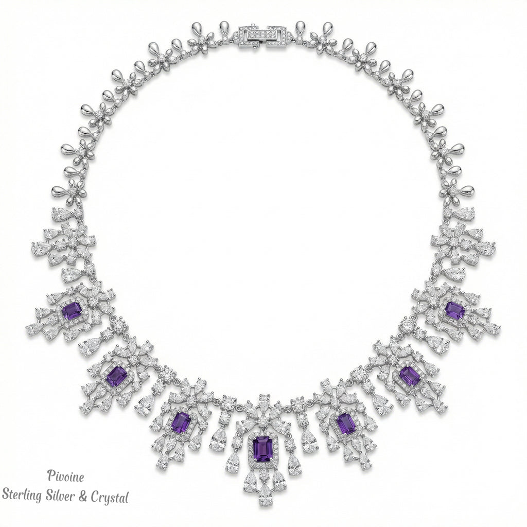 Indulge in the opulent beauty of the Pivoine Milano Sterling Silver and Crystal Bridal Necklace, a stunning piece to elevate your special day. Handcrafted from exquisite Sterling Silver with dazzling crystal adornments, this necklace exudes elegance and radiates with a touch of glamour, making it an ideal choice for weddings, special events, and formal affairs.