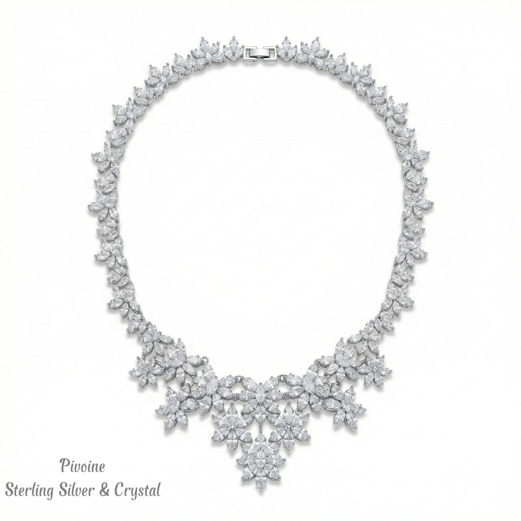 Pivoine Milano Sterling Silver and Crystal Bridal Necklace 13