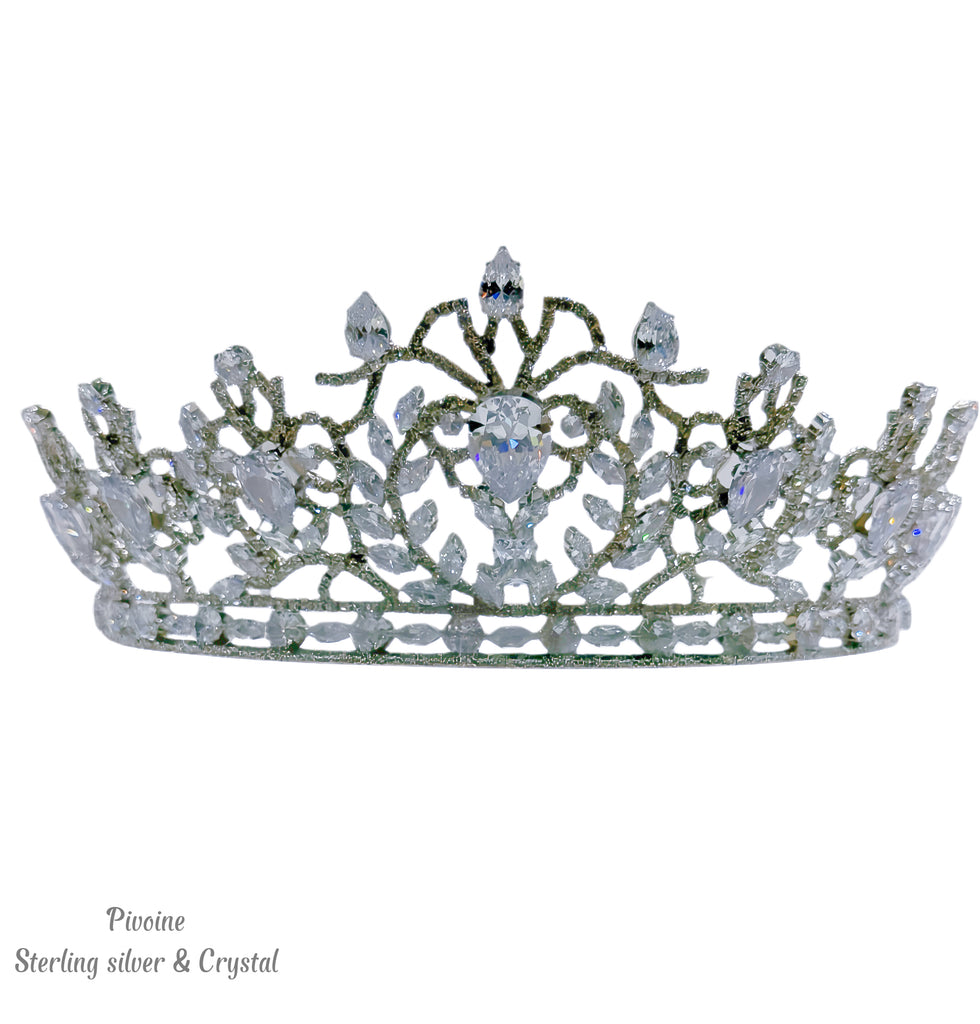 Pivoine Bridal Tiara Milano Sterling Silver and Crystal Handmade Crown 56*