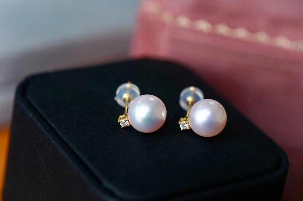 Lustrous 8-9 mm diameter round Akoya pearl. Can be worn on any occasion, whether formal evening event or everyday casual