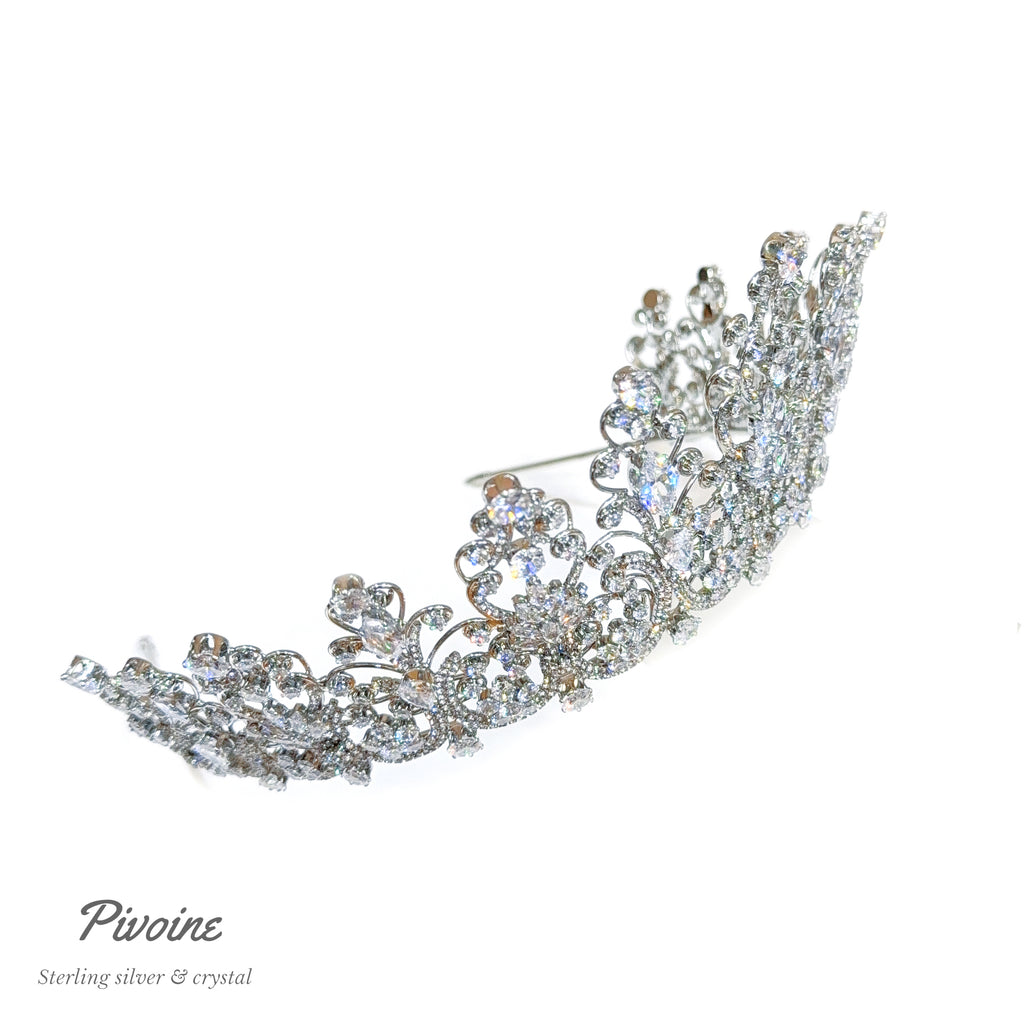 Pivoine Bridal Tiara Milano Sterling Silver and Crystal Handmade Crown 30